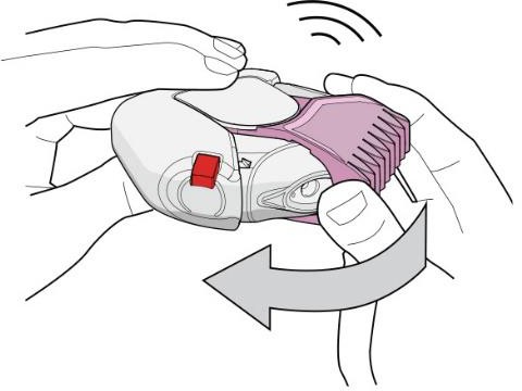 4. Lukk inhalatoren for å holde den ren, ved å rotere det lyserosa (for 50/100 mikrogram) eller rosa (for 50/250 mikrogram) munnstykket så langt tilbake mot deg som det går. Du skal høre et klikk (se figur 4). Munnstykkedekselet har nå gått tilbake til den opprinnelige plasseringen og er nullstilt. Inhalatoren er nå klar til du skal ta den neste planlagte dosen.