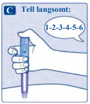 Forsikre deg om at du kan se dosetelleren. Ikke dekk den med fingrene. Dette kan avbryte injeksjonen.