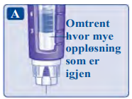 Kontroller at oppløsningen i pennen er klar og fargeløs. Se gjennom pennevinduet. Hvis oppløsningen ser uklar ut, skal pennen ikke brukes.