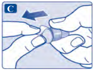 Nålen er dekket av to hetter. Du må fjerne begge hettene. Dersom du glemmer å fjerne begge hettene, vil du ikke få injisert noe oppløsning.