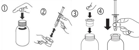 I pakningen er det inkludert en 10 ml oral sprøyte, med gradering på 0,5 ml, sammen med en flaskeadapter for sprøyten. Bruk disse til å måle riktig dose.