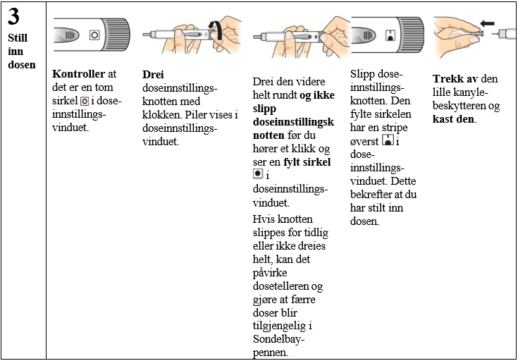 Du skal ikke dele Sondelbay-pennen eller kanyler med andre, da dette kan medføre risiko for overføring av smittestoffer.