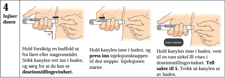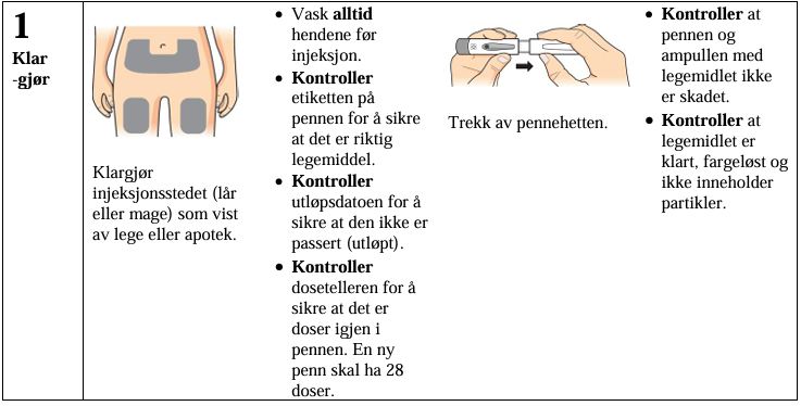 Dersom du opplever situsjoner med rødhet i huden, smerte, hevelse, kløe, blåmerker eller mindre blødninger ved injeksjonsstedet (frekvens; vanlig), bør det gå over i løpet av få dager eller uker. Dersom dette ikke går over skal du kontakte lege.