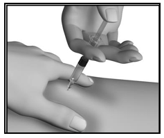 4. Fortsett å holde huden og press inn sprøytestemplet for å injisere legemidlet langsomt og jevnt helt inn.