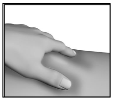 2. Klem forsiktig huden i det valgte injeksjonsområdet sammen mellom tommel og pekefinger.