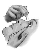 10. Trykk forsiktig på beholderen og la det falle ned én dråpe i rommet mellom øyet og det nedre øyelokket.