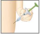 1f Klargjør huden. Rens huden med en spritserviett. La injeksjonsstedet tørke naturlig før du injiserer legemidlet. |