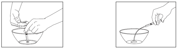 Hvis det er noe innhold igjen i den andre bollen, skyll bollen med litt vann og la barnet drikke resten av blandingen. For barn som ikke kan drikke fra en bolle, bruk en skje eller flaske for å gi barnet resten av miksturen.