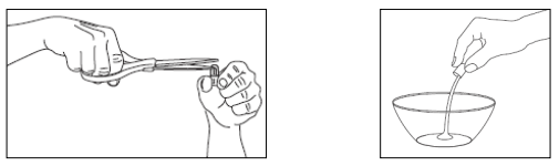 Hold en 45 mg kapsel rett opp over en bolle og klipp forsiktig av den avrundede toppdelen med en saks.
