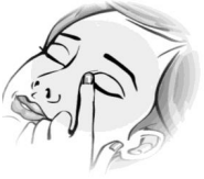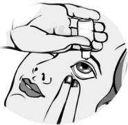 8. Lukk øyet og press med fingeren i det indre hjørnet av øyet i ca. to minutter. Dette bidrar til å hindre øyedråpen i å renne ned i tårekanalen.