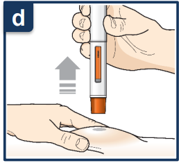 Når du har satt injeksjonen, løfter du den ferdigfylte pennen rett opp.