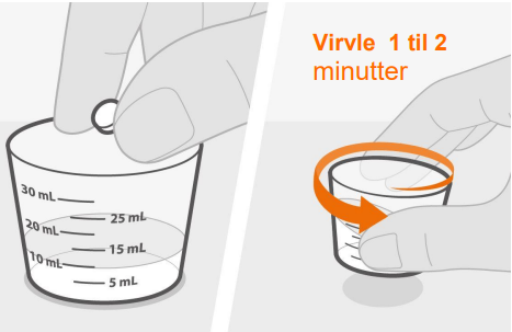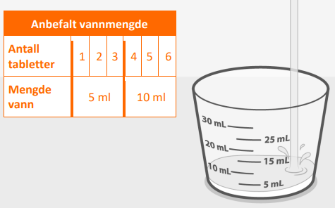 Se den separate bruksanvisningen for hvordan du løser opp og administrerer tablettene ved hjelp av doseringskoppen og den orale sprøyten som følger med i denne pakningen. -