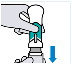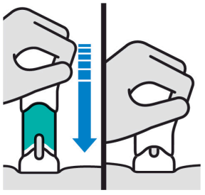 Under injeksjonen presses håndtaket helt ned til grønn hoveddel ikke er synlig, for å injisere hele dosen.