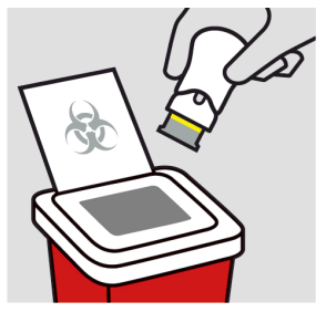 Legg den brukte ferdigfylte pennen i en beholder for skarpe gjenstander umiddelbart etter bruk.