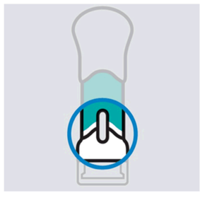 IKKE LØFT DEN FERDIGFYLTE PENNEN UNDER INJEKSJONEN! Hvis du gjør det, låses nålens sikkerhetsanordning, og du får ikke hele dosen. |