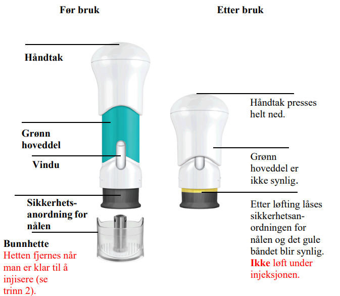Les også pakningsvedlegget nøye før du starter injeksjonen og diskuter eventuelle spørsmål du måtte ha med legen eller sykepleieren.