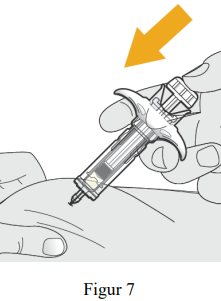Injiser all væske ved å bruke tommelen til å skyve stempelet helt inn til den ferdigfylte sprøyten er tom (se figur 7).