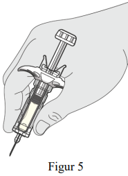 Hold sprøytesylinderen til den ferdigfylte sprøyten i én hånd mellom tommel og pekefinger (se figur 5).