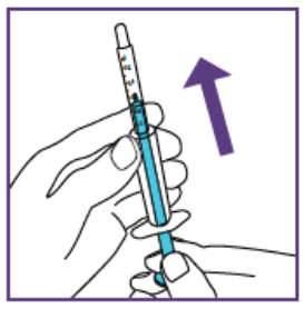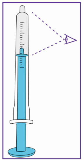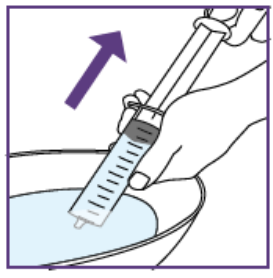 2. Trekke opp den forskrevne dosen (med hver nye blå sprøyte)For å unngå overdosering eller underdosering er nøyaktig dose suspensjon nødvendig.