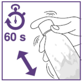 ➔Når det ikke er noen klumper eller bunnfall i flasken er suspensjonen klar til bruk.