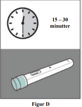a. La den ferdigfylte pennen ligger i romtemperatur i 15 til 30 minutter for at den skal bli varmet opp.