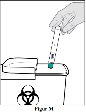 a. Kast alltid den brukte ferdigfylte pennen i en avfallsbeholder for skarpe gjenstander som anvist av legen, sykepleieren eller apoteket.